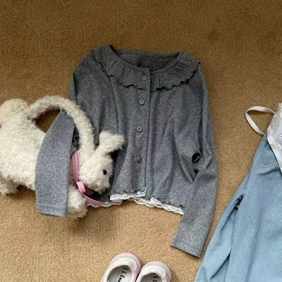 아이아이.봄)포니프릴코튼가디건나시세트